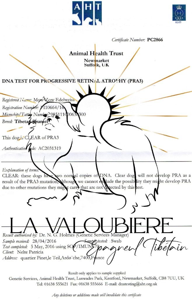 ADN : Document dans son album - photo 70 Maladies héréditaires oculaires : Examen du 28/01/20 Indemne PRA3 : Indemne - document dans son album - photo 69 |